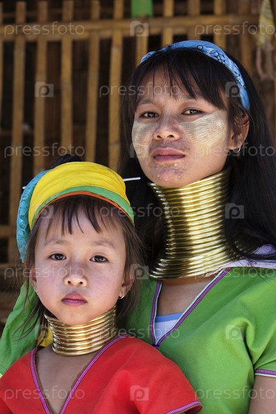 Таиланд, Чианг Май, девочка с мамой из деревни Карен Хилл в традиционных костюмах