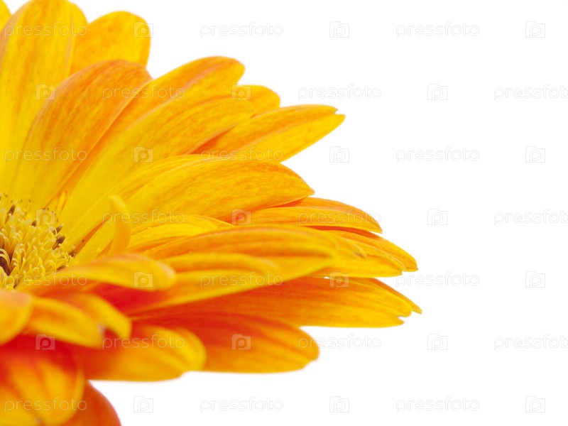 Желтая гербера крупным планом на белом фоне
