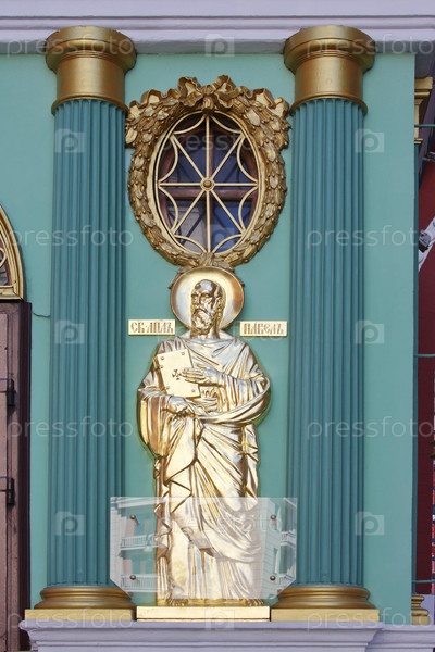 Статуя святого апостола Павла у входа в часовню Иверской Божией Матери на Красной площади в Москве