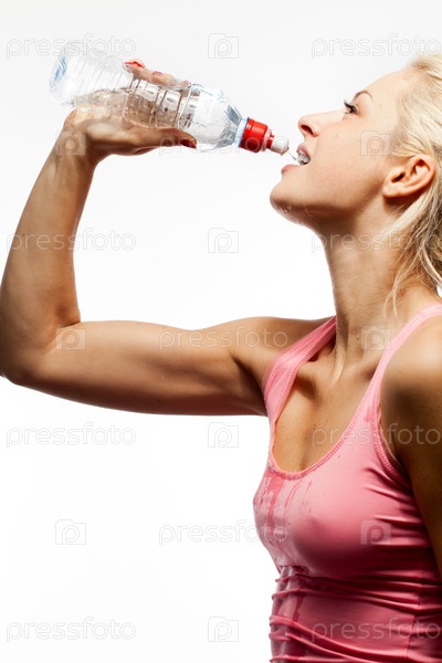 Молодая женщина пьет воду