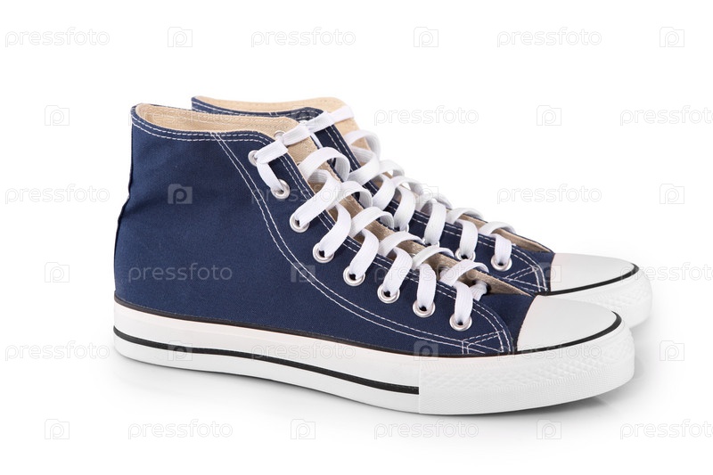Пара новых синих кед на белом фоне
