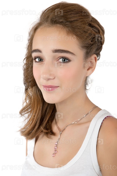 Девочка-подросток с макияжем, изолированная на белом фоне