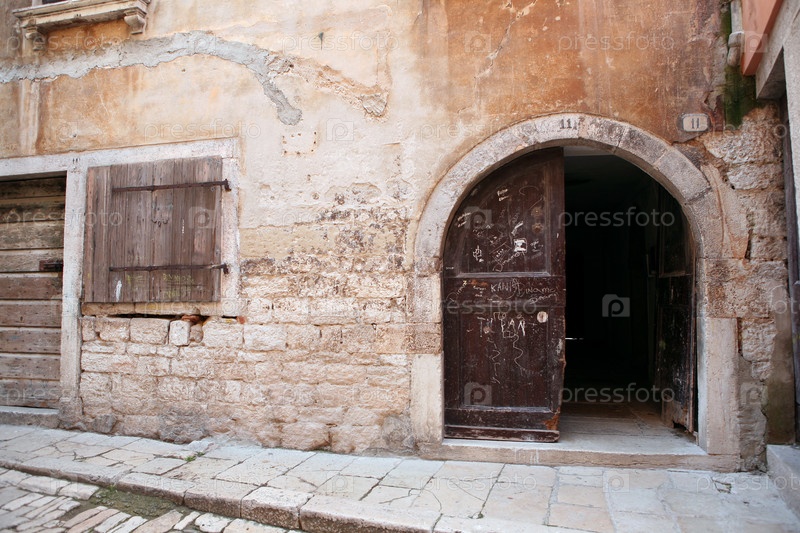 Фрагмент средиземноморского каменного дома в городе Ровинь, Хорватия