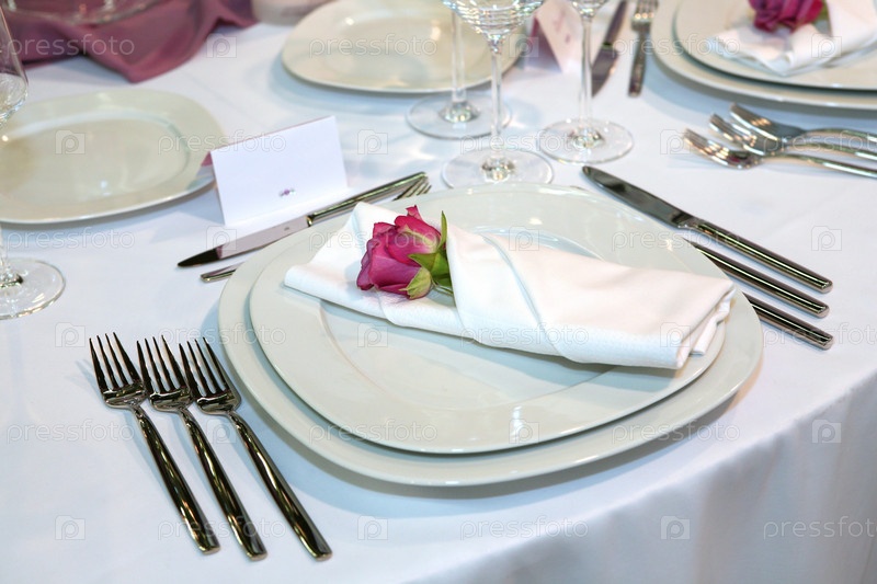 Изысканный свадебный ужин с красной розой на тарелке