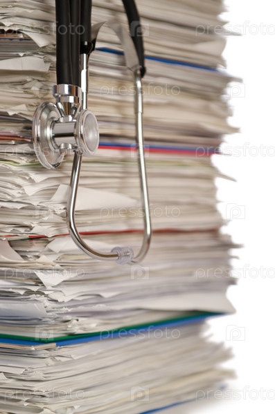 Стопка документов и стетоскоп