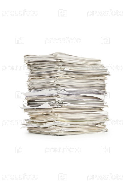 Кипа бумаг на белом фоне