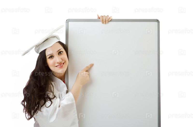 Молодой студент с пустым баннером