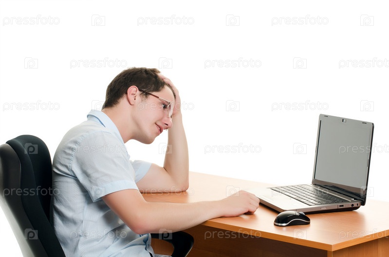 Бизнесмен за столом с компьютером
