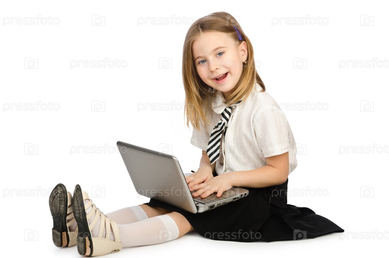 Симпатичная девочка с ноутбуком