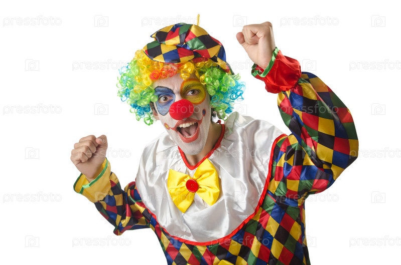 Забавный клоун на белом фоне
