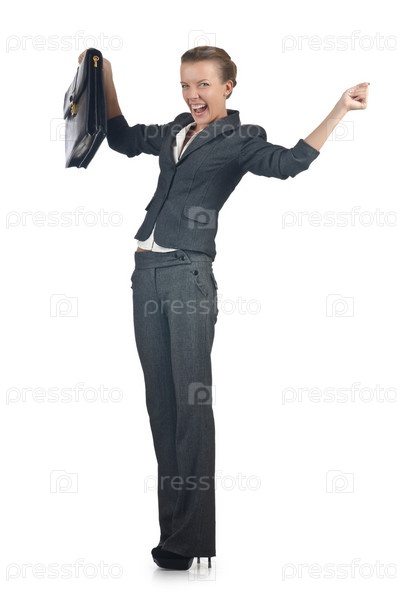 Бизнес-леди с портфелем на белом фоне
