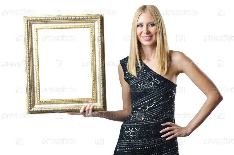 Молодая девушка с рамой на белом фоне
