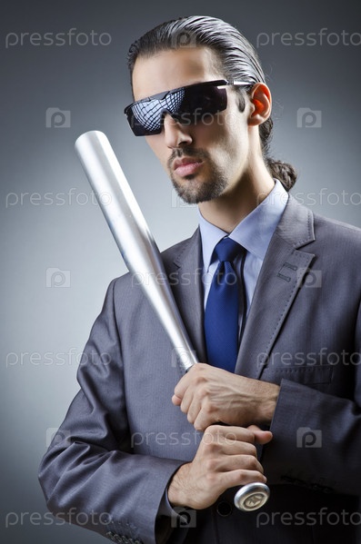 Сердитый бизнесмен с битой