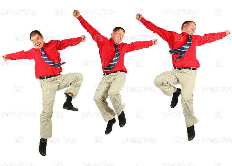 Мужчина в красной рубашке прыгает