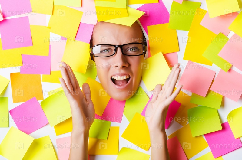 Женщина в куче стикеров