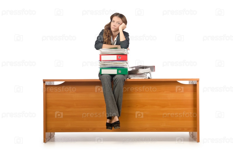 Молодая бизнес-леди на столе