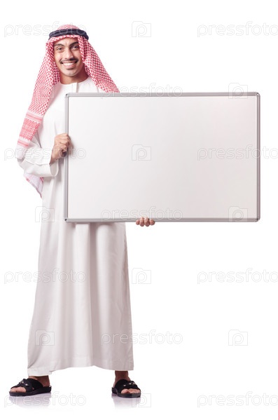 Араб с чистой доской на белом фоне