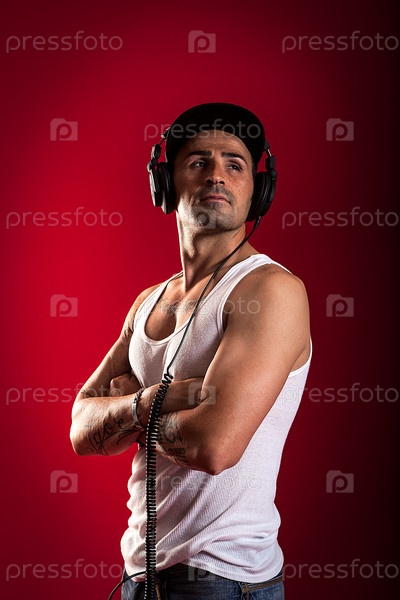 Молодой мужчина в наушниках