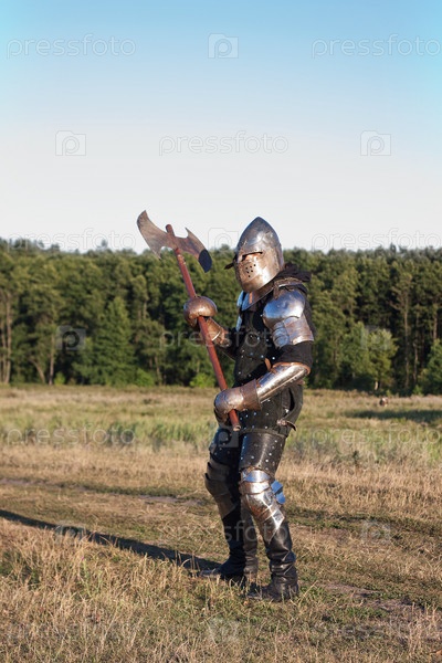 Средневековый рыцарь в поле с топором
