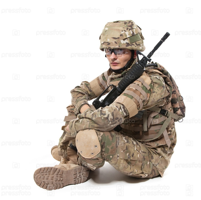 Современный солдат с винтовкой