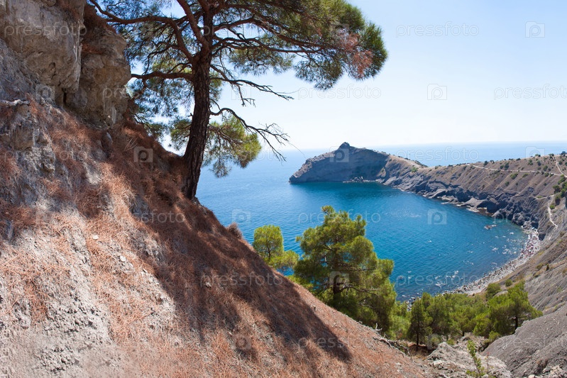 Летний морской пейзаж, пляж Судак, Черное море, Украина