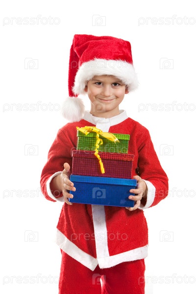 Мальчик держит рождественский подарок