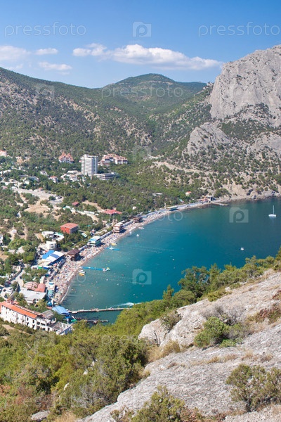 Летний морской пейзаж, пляж Судак, Черное море, Украина