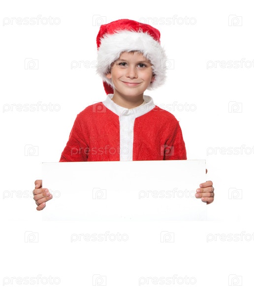 Мальчик держит рождественский плакат