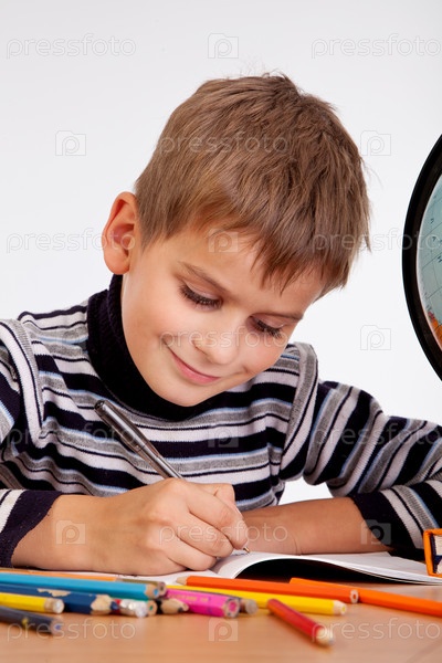 Симпатичный школьник пишет