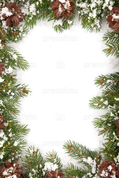 Рождественская рамка со снегом и шишками