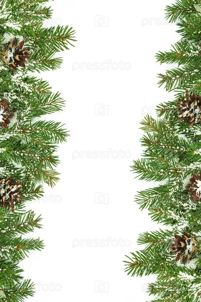 Рождественская рамка со снегом и шишками