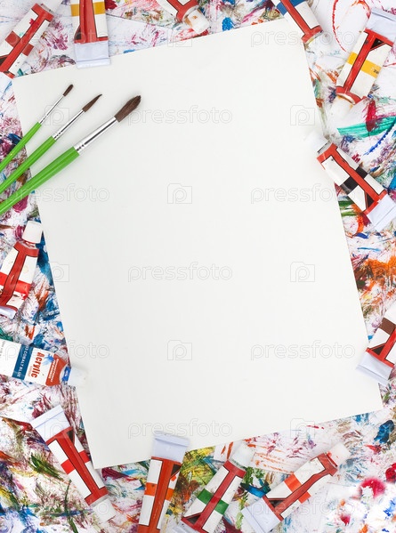 Акварельные краски и кисти на бумаге