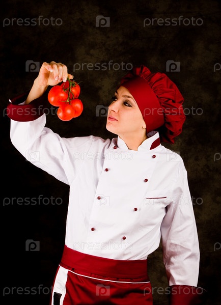 Шеф-повар проверяет качество помидоров