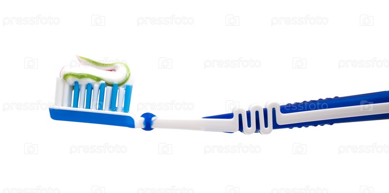 Зубная щетка с пастой на белом фоне