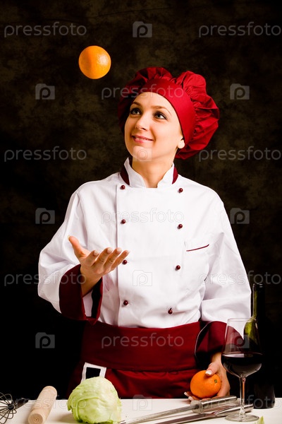 Шеф-повар жонглирует апельсинами