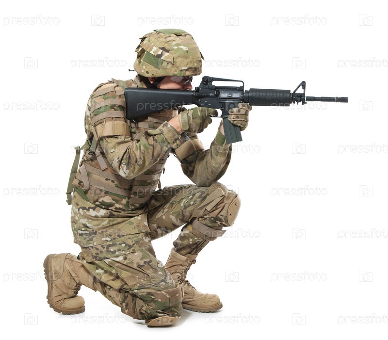 Современный солдат с ружьем