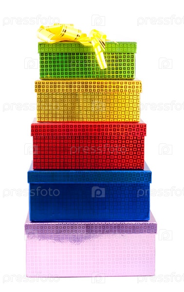 Цветные подарочные коробки, изолированные на белом фоне