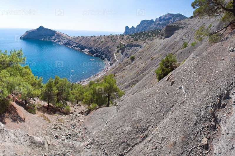 Летний морской пейзаж, пляж Судак, Черное море, Украина