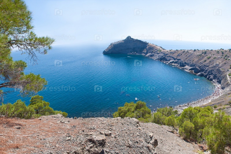 Летний морской пейзаж, пляж Судак, Черное море, Украина