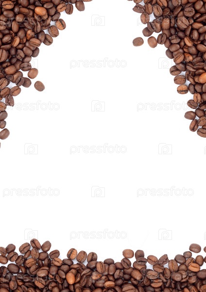 Коричневые поджаренные кофейные зерна, изолированные на белом фоне