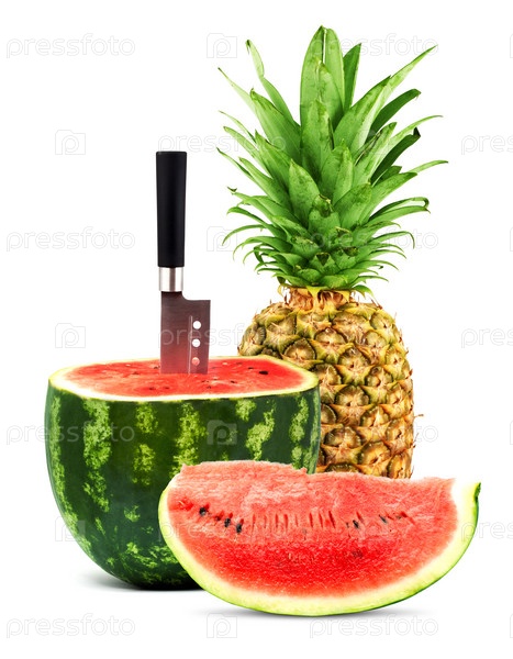 Ананас и арбуз на белом фоне