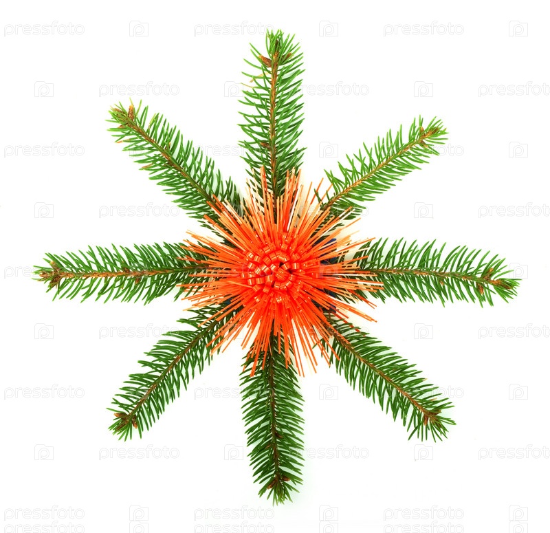 Снежинка из ветвей елки, изолированная на белом фоне