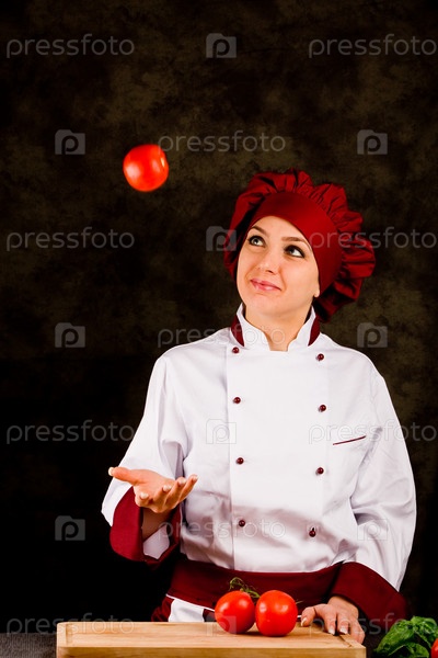 Шеф-повар жонглирует помидорами
