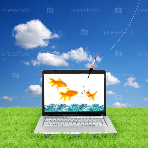 Золотая рыбка на мониторе ноутбука