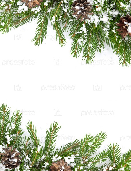 Рождественская рамка со снегом и шишками
