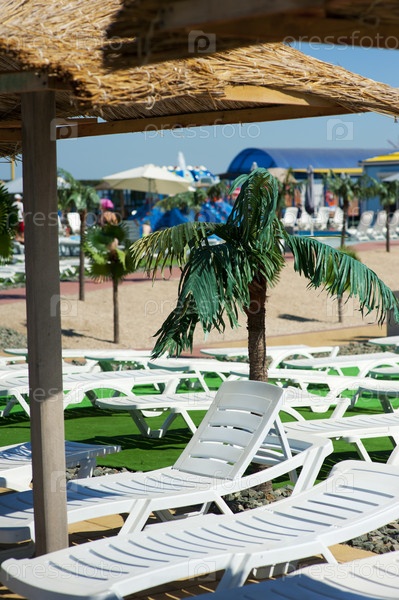 Шезлонги на тропическом курорте