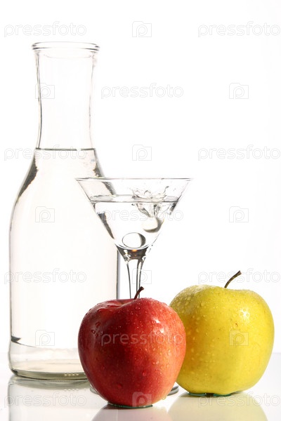 Два яблока и бутылка с водой