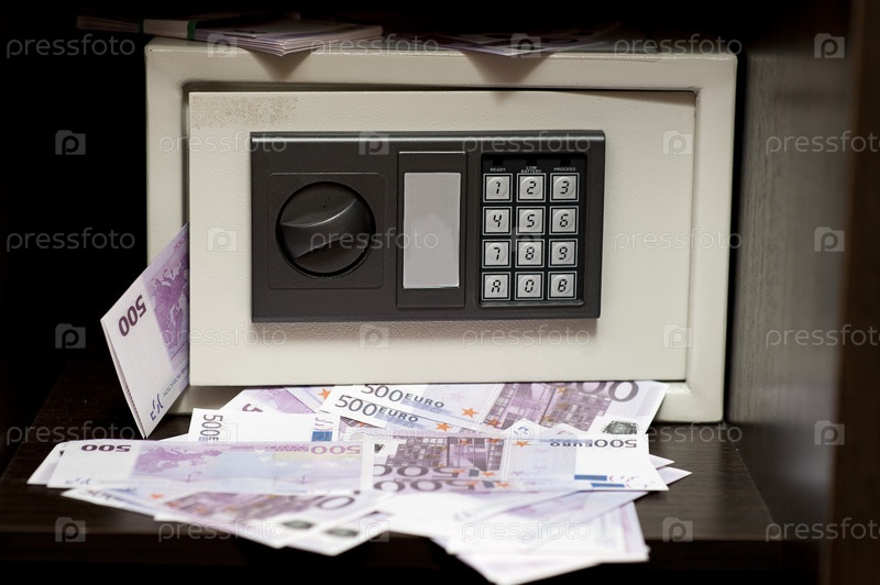 Стальной электронный сейф с деньгами