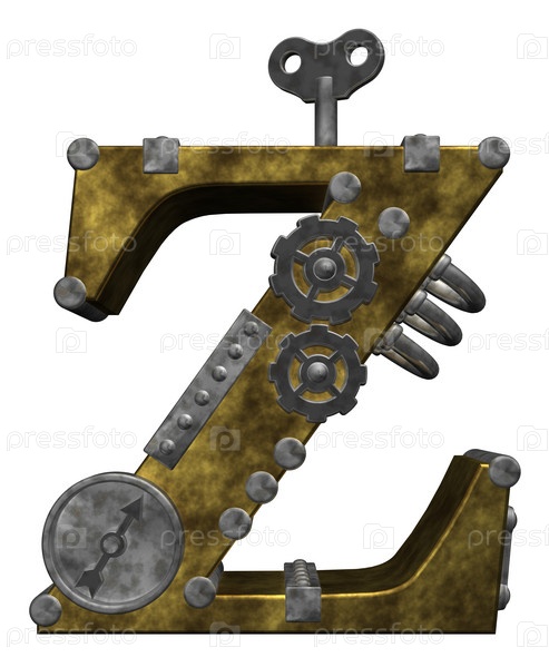 Буква Z в стиле стимпанк на белом фоне. трёхмерная иллюстрация