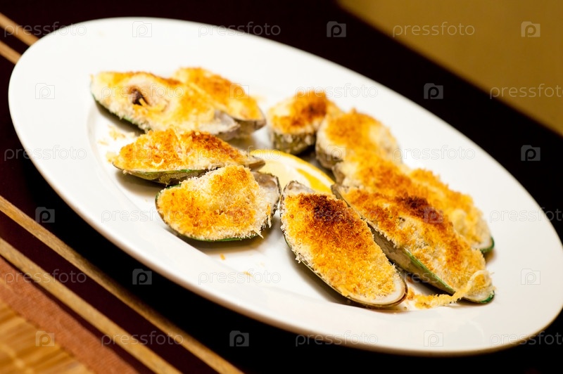 Мидии под сыром с лимоном